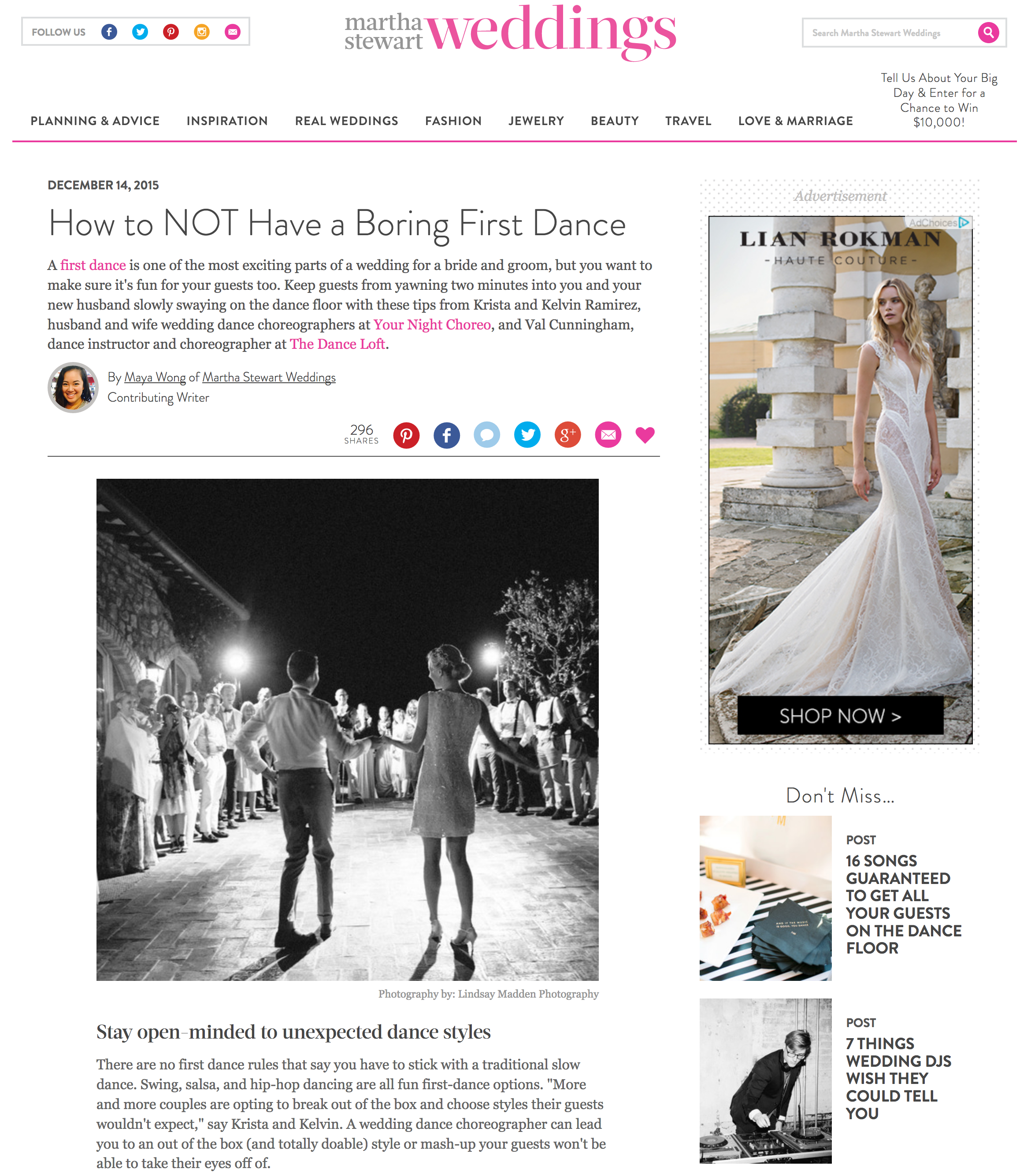 “If this review is part of your research, then you should absolutely consider all of the strong reviews and book today. The Dance Loft is a fantastic experience that tailors the experience toward your skill and comfort level. We loved working with Angela and would highly recommend her to anyone looking to learn specific moves for their special day or just become a little more expert at something they already know.